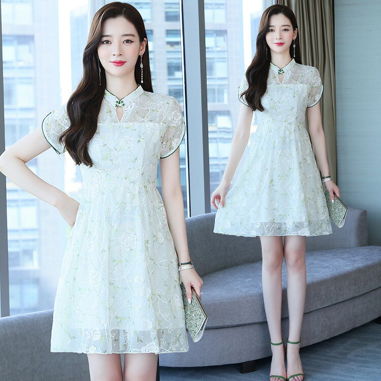 チャイナドレス風花柄ワンピース Aライン 花柄 ワンピース シースルー 刺繍 半袖 ショート丈 ミニワンピース 夏ワンピース きれいめ 大人ガーリー 上品 お呼ばれ 女子会 パーティードレス リゾート 春夏 レディース 大きいサイズ 可愛い ハロウィン【220706】