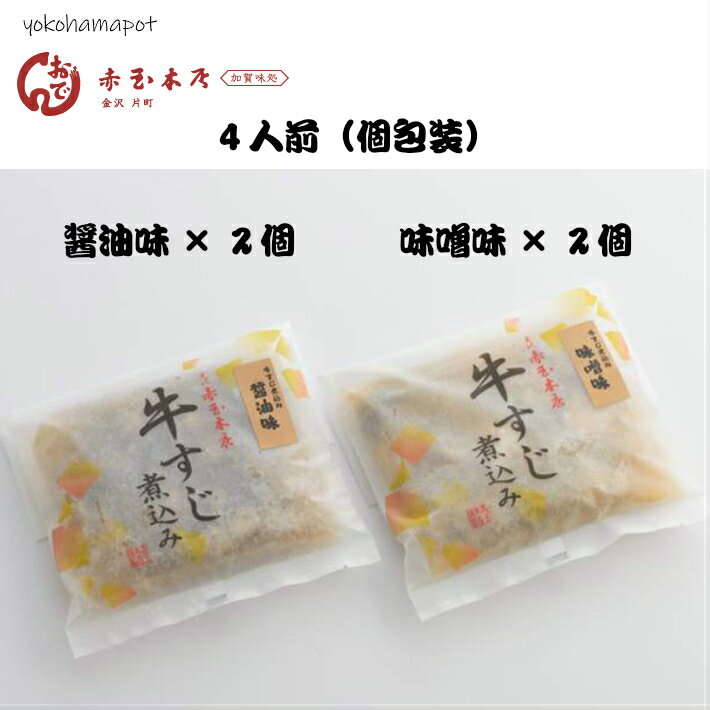 北陸グルメ 牛すじ煮込み 4人前 醤油味×2個&味噌味×2個 個包装 石川県金沢の赤玉本店から 産直 ギフト 2味 贈答 送料無料