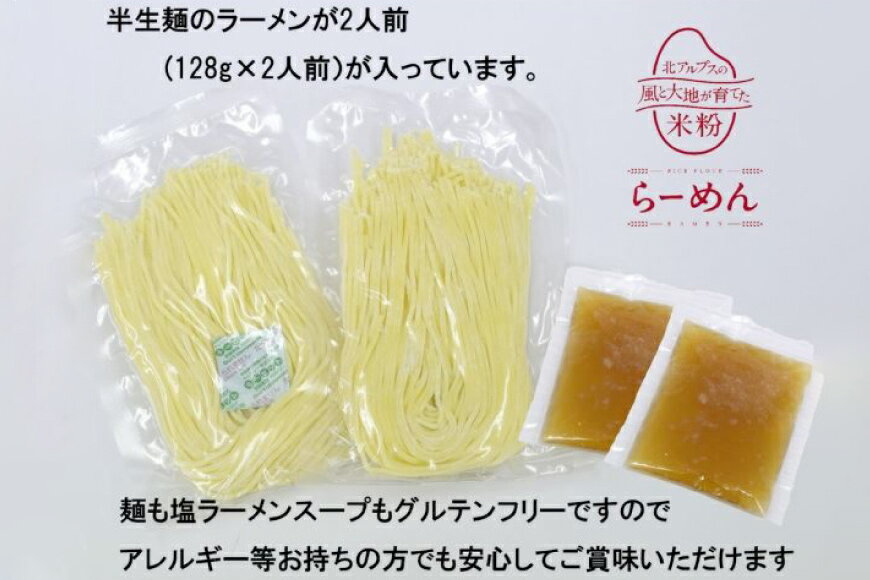 【ふるさと納税】グルテンフリー 米粉らーめん & 塩スープ 2食入り 米粉 麺 国産 ラーメン 半生麺 / 大北農業協同組合 / 長野県 池田町