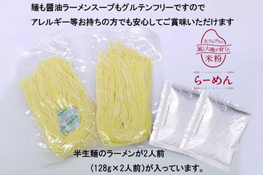 【ふるさと納税】グルテンフリー 米粉らーめん & 醤油スープ 2食入り 米粉 麺 国産 ラーメン 半生麺 / 大北農業協同組合 / 長野県 池田町