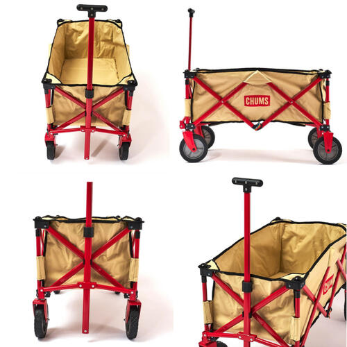 【国内正規品】【2022春夏】【CHUMS チャムス】CHUMS Folding Wagon チャムスフォールディングワゴン Beige/Red アウトドアワゴン コンパクト収納 CH62-1755 5%OFF ブービーウィンドスピナー付き