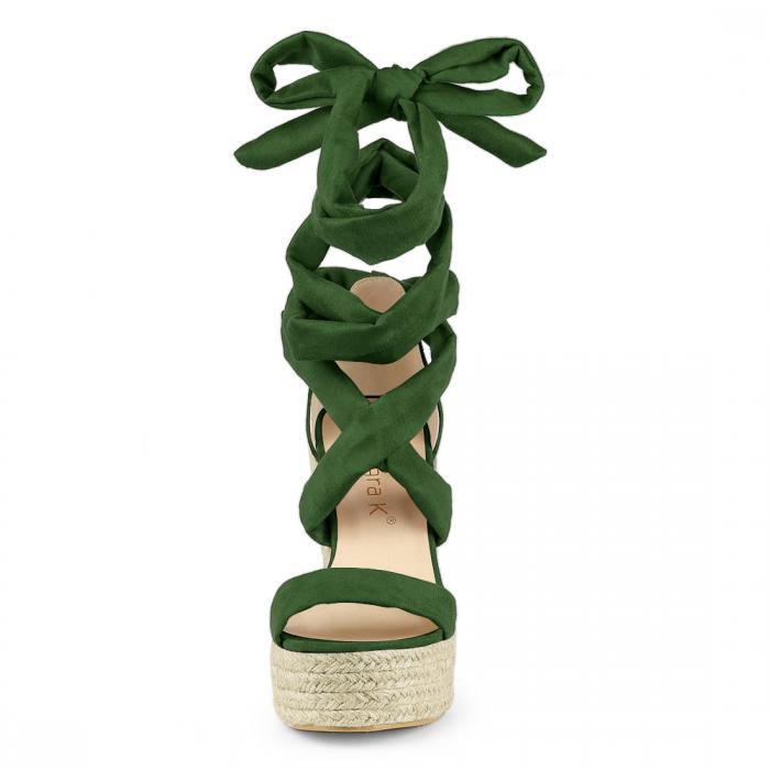 ソウテン Allegra K レースアップサンダル ハイヒール プラットフォーム ウェッジヒール エスパドリーユ レディース グリーン 24.5 cm