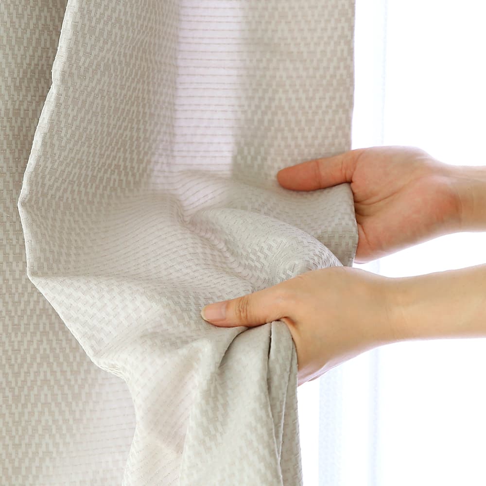 ヘリンボーン風無地調デザインがホテルライクな雰囲気<ギュンター> 機能: 2級遮光相当・形状記憶・遮熱・保温・ウォッシャブル 付属品: 共布タッセル・アジャスターフックA or B 素材: ポリエステル100% 対応スタイル: 1.5倍ヒダ(2つ山) ヒダなし(フラット) 2倍ヒダ(3つ山) ⇒スタイルについて詳しくはこちら 色について: 各種コーディネート例の写真はイメージを重視しているため、部屋の照明によっては実際の色と異なって見える場合があります。