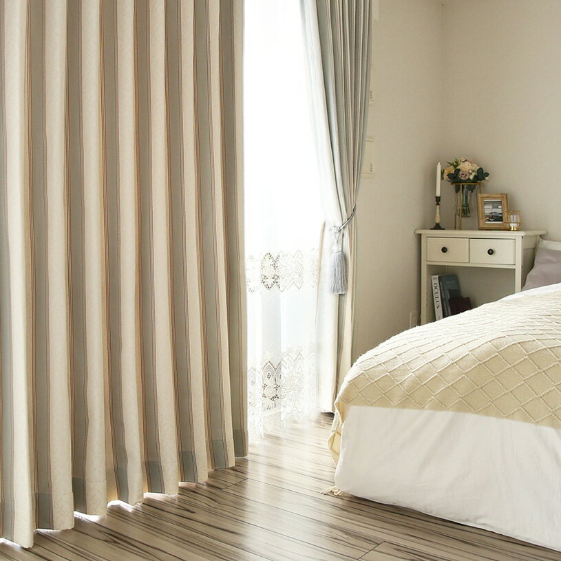 ポール通し可【遮光裏地付き】 ジャカード カーテン 優しいストライプ柄が ナチュラル な印象の ジャカード <マリエール> 優しいストライプ柄で、お部屋をナチュラルな印象に やさしいマカロンカラーのストライプ柄ジャカードカーテンです。