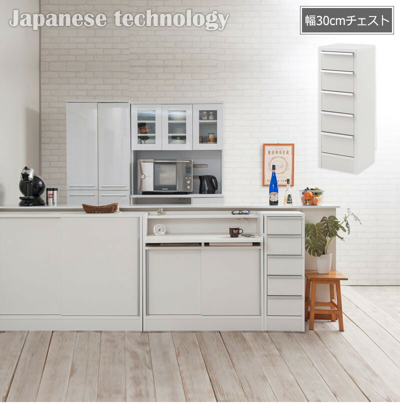 飾り気のないシンプルさ カウンター下収納 スリムチェスト 幅30 奥行30 完成品 ホワイト 白 【送料無料】 5段 引き出し 小物収納 おしゃれ 薄型 多段チェスト 木製 小引き出し 収納 ボックス 小引き出しチェスト