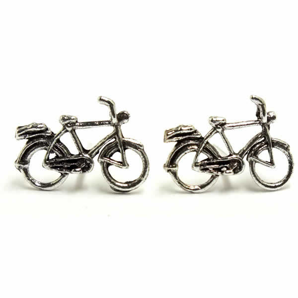 大きなフォルムで自転車をデザインしたシルバー925ピアス。