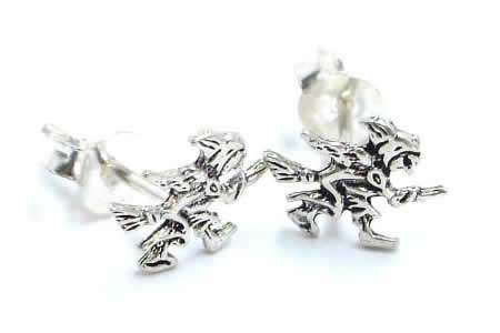 いたずら好きのゴブリンがほうきを持っていたずらに出かける瞬間をピアスに仕上げたカワイらしいシルバーピアスです。