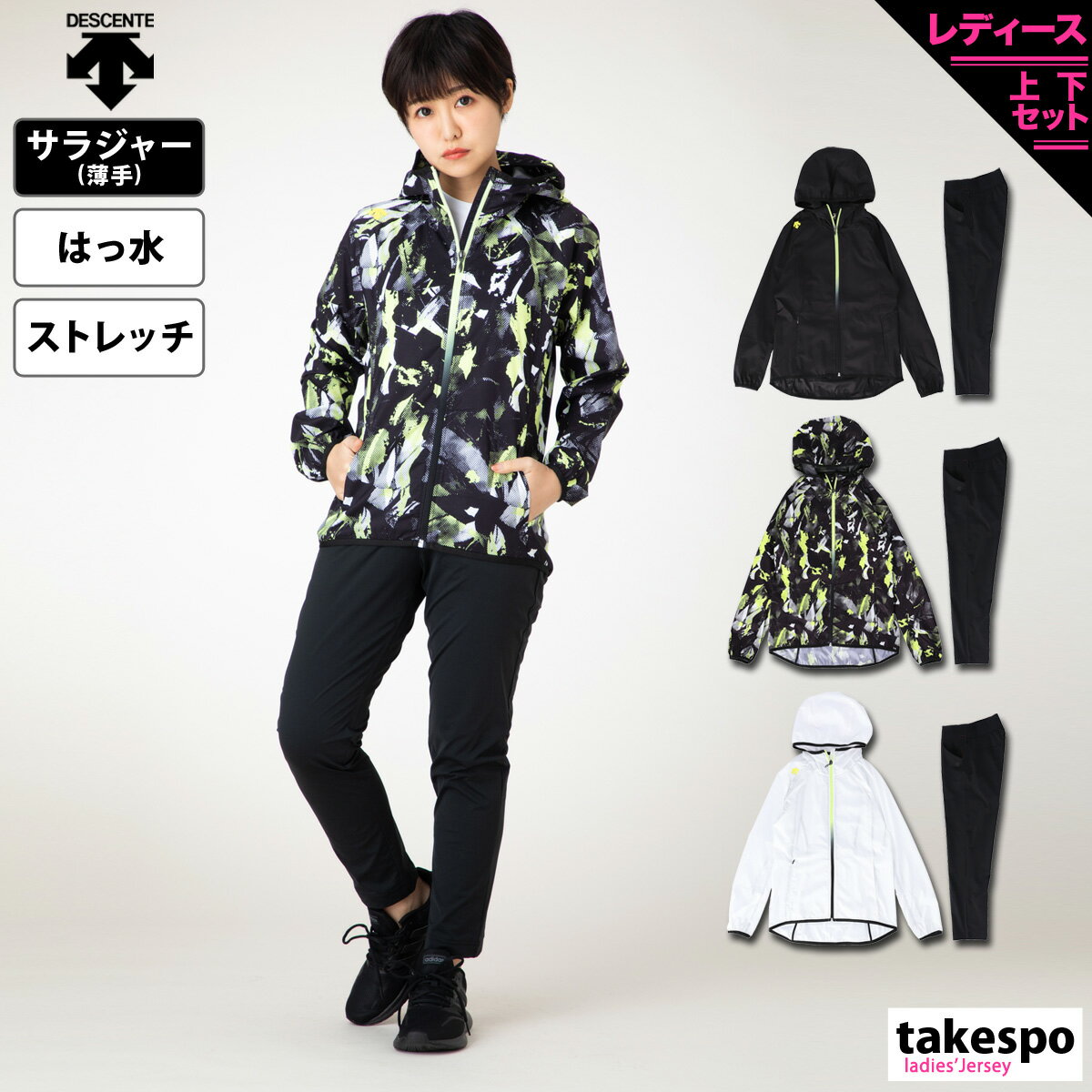 送料無料 SALE セール デサント クロス薄手 ジャージ 上下 レディース DESCENTE 薄手 軽量 ストレッチ ランニング パーカー パンツ DMWTJC11
