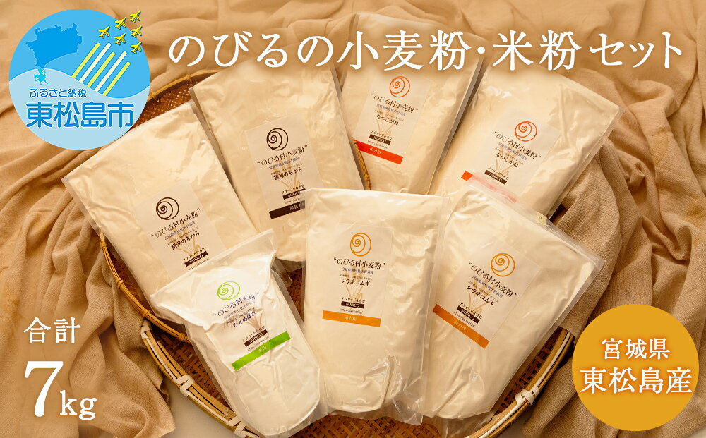 【ふるさと納税】宮城県産 のびるの小麦粉・米粉 セット 合計7kg 国産 薄力粉 中力粉 超強力粉 ひとめぼれ米粉