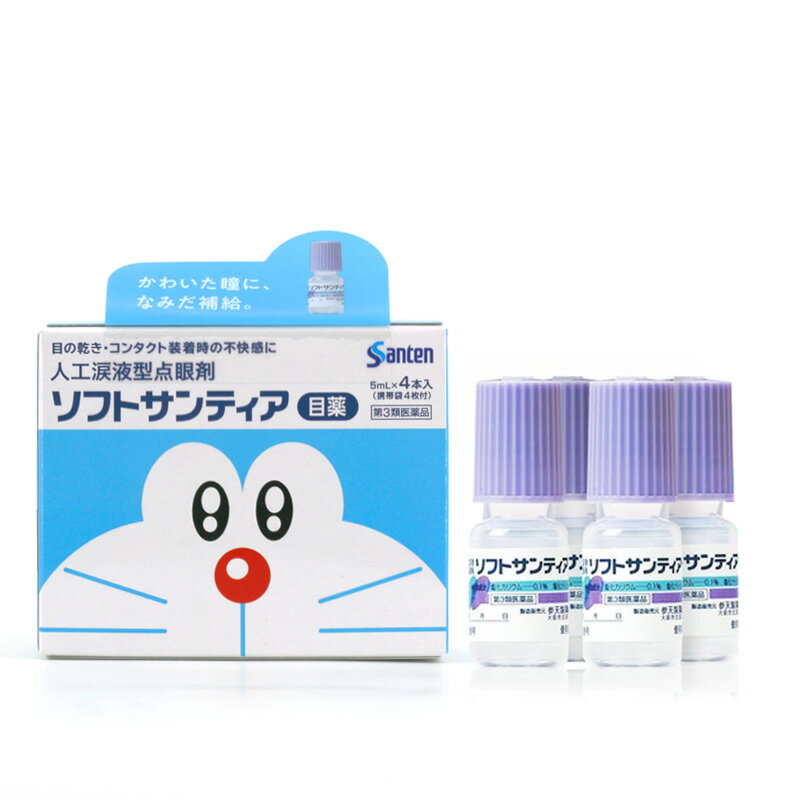 【プレゼント特典中 】【第3類医薬品】2023.10使用期限 参天製薬 ソフトサンティア 企画品(ドラえもん) 5ml×4眼炎 紫外線 眼病予防 水泳 ほこり 汗 充血 かゆみ はれ しみて痛い ソフトコンタクトレンズ ソフトサンティア