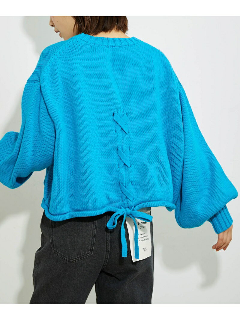 【SALE/15%OFF】【WEB限定】ゆったりバックレースアップショート丈ニットプルオーバー vis-à-vis ビス ニット ニットその他 ブルー ホワイト ブラウン【RBA_E】[Rakuten Fashion]