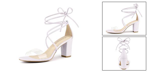 Allegra K クリア 透明 レースアップサンダル ハイヒール ストラップ ブロックヒール レディース パープル 26.0cm