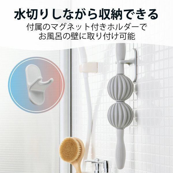 ・付属のマグネット付きホルダーでお風呂の壁に直接取り付けて、水切りしながら収納できます。