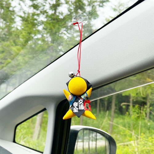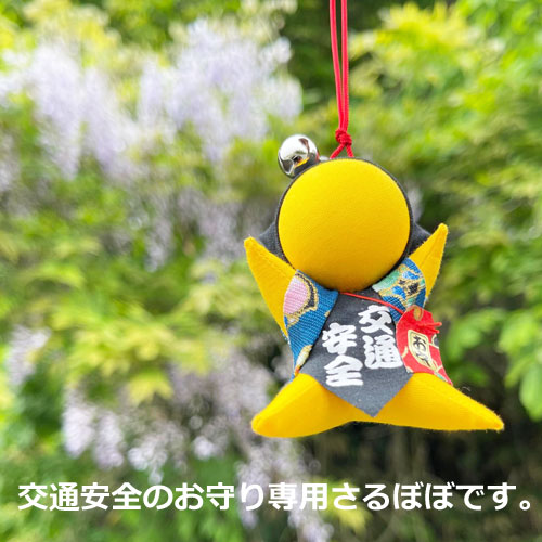 黄色いさるぼぼは本来は金運、開運のお守りです、そんな効果も期待して素敵なことが沢山ありますようにと願い日々の交通安全を祈願しました御守りです。