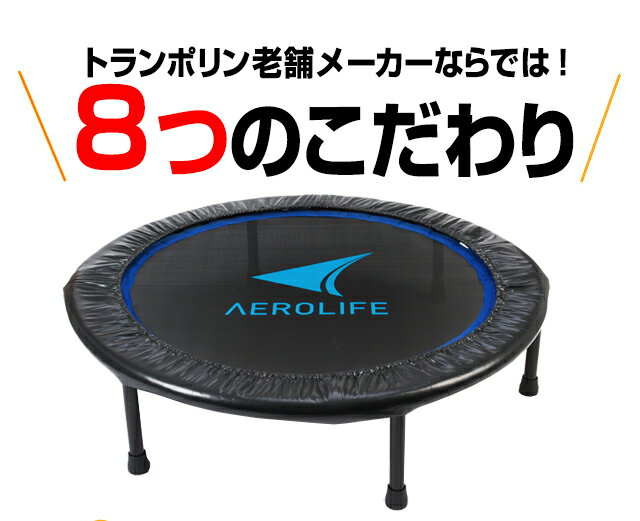 愛され続けて25年のエアロライフ®ホームジャンピングシリーズから 新型トランポリン登場!! こんな方におススメします! ・自宅で気軽に運動不足を解消したい ・キツいダイエットは続かない ・ストレスを発散したい そんな方にはただ跳ぶだけのトランポリンがオススメ! トランポリン運動なら ・筋力UP ・体幹トレーニング ・有酸素運動 が同時に可能! ダイエットに効果的なトランポリン運動 「トランポリン」というと高くポーンポーンと跳ぶことを想像しがちですが、あれはあくまでも競技用。