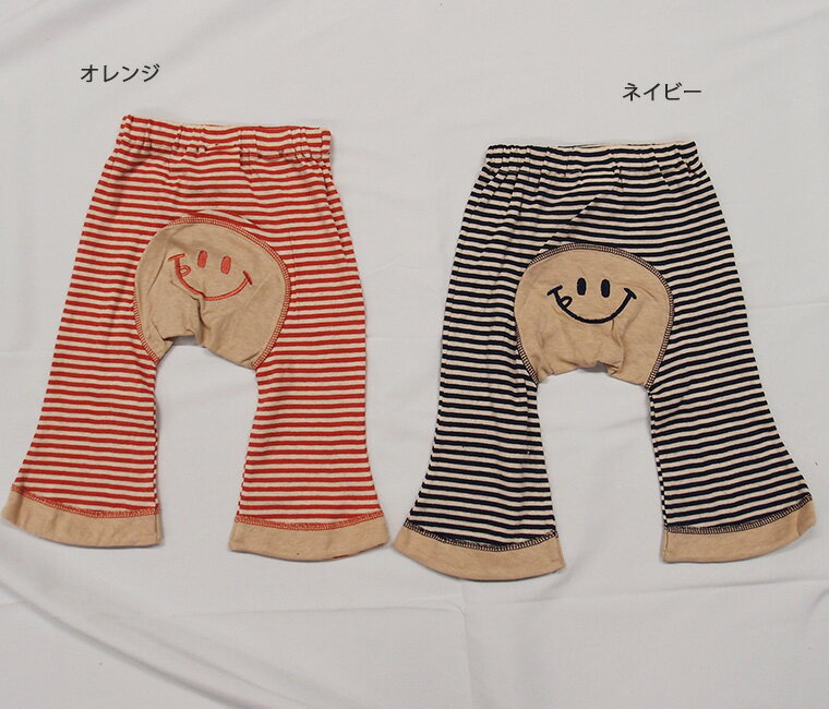 送料無料 子供服 パンツ マルチボーダーのお尻がかわいいミニ裏毛モンキーパンツ(10分丈)日本製3430(80cm90cm)・メール便可13 男の子 女の子ズボン 赤ちゃん