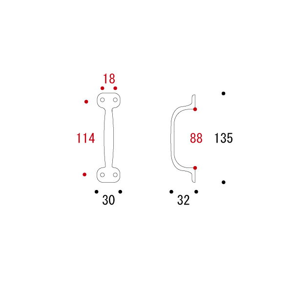 取り付け土台部分が四角形の真鍮製の取っ手です。