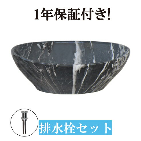 洗面ボウル おしゃれ 大理石調 黒 ブラック リフォーム 改装 DIY 陶器製 新生活 大きい 大きめ 大型 置き型 ベッセル オンカウンター 楕円型 オーバル 幅41cm INK-0403261H