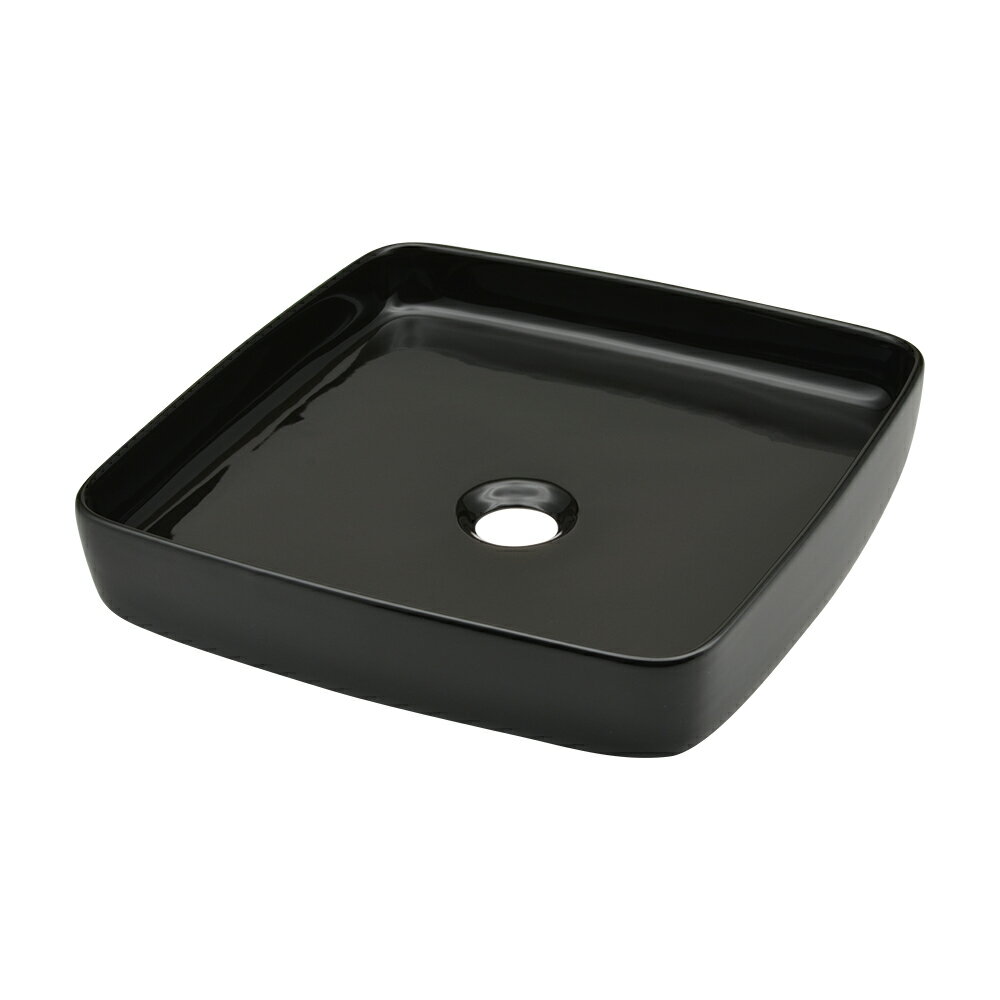 Zenojaku 洗面ボウル 洗面台 陶器製 手洗いボウル ベッセル式 手洗器 排水金具付き ブラック (410*340*143mm)